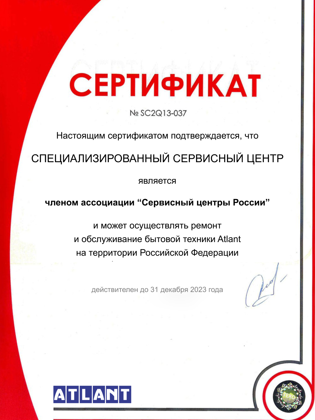 Наш сервис является официальным членом ассоциации "Сервисные центры России" и может выполнять ремонт техники Atlant.