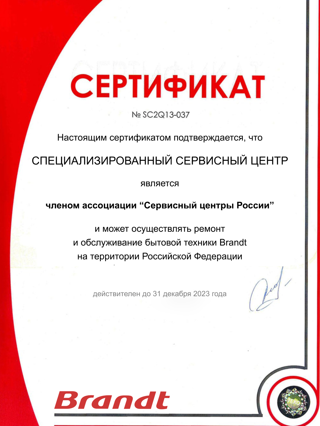 Наш сервис является официальным членом ассоциации "Сервисные центры России" и может выполнять ремонт техники Brandt.