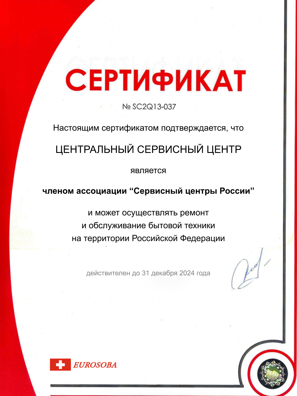 Наш сервис является официальным членом ассоциации "Сервисные центры России" и может выполнять ремонт техники Eurosoba.