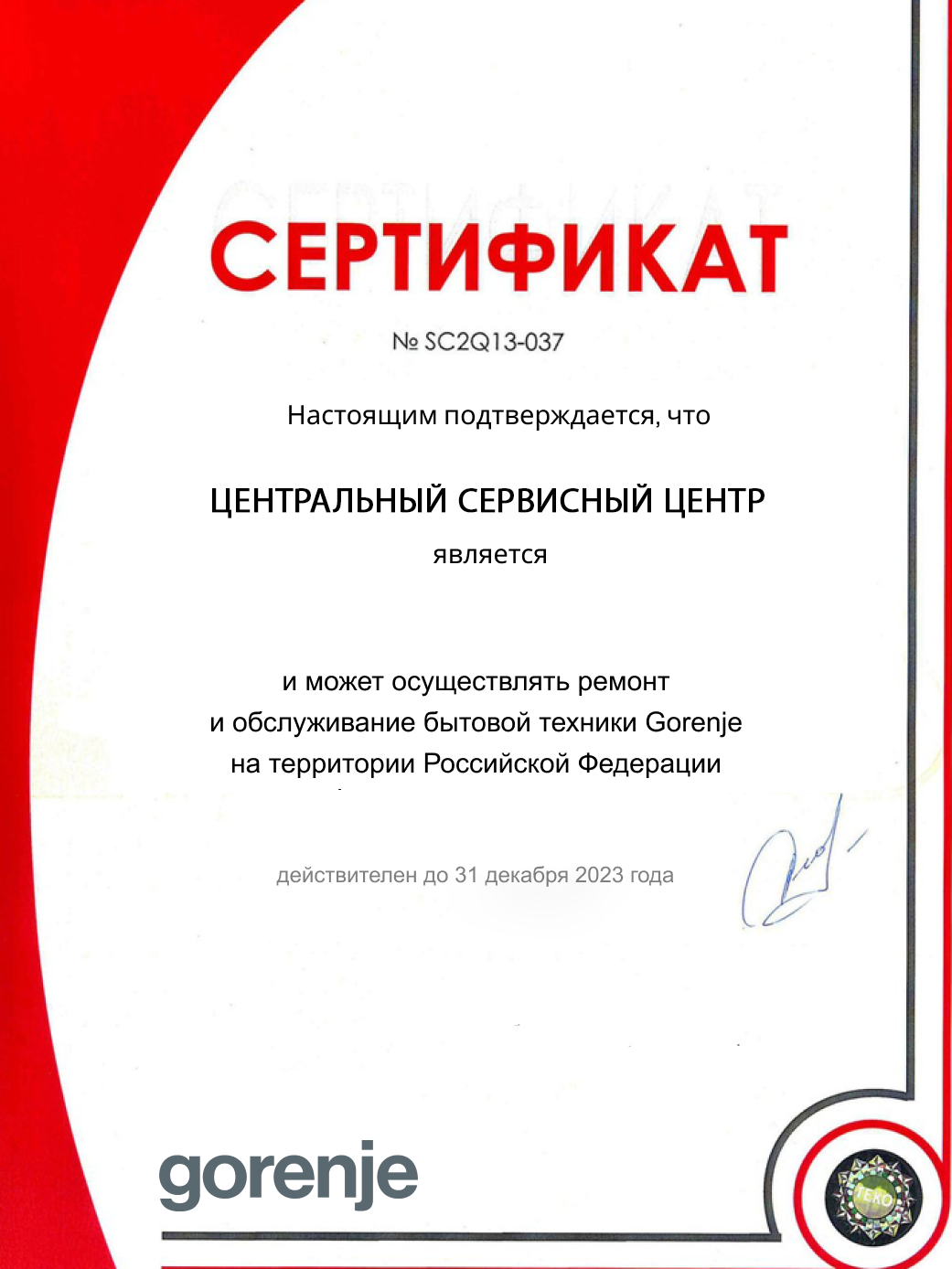 Наш сервис является официальным членом ассоциации "Сервисные центры России" и может выполнять ремонт техники gorenje.