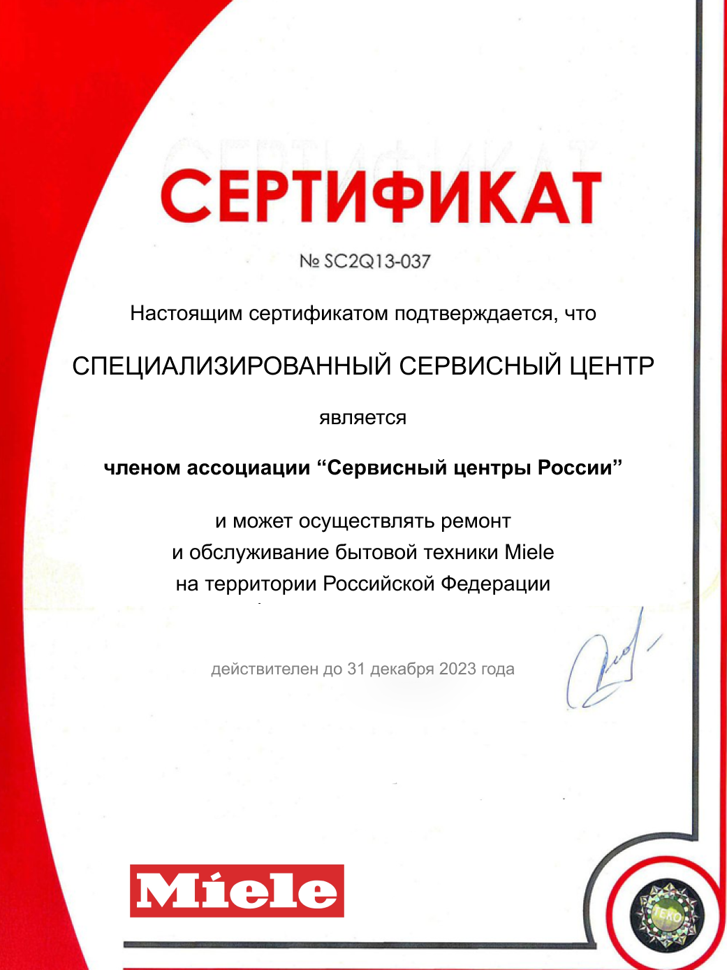 Наш сервис является официальным членом ассоциации "Сервисные центры России" и может выполнять ремонт техники Miele.